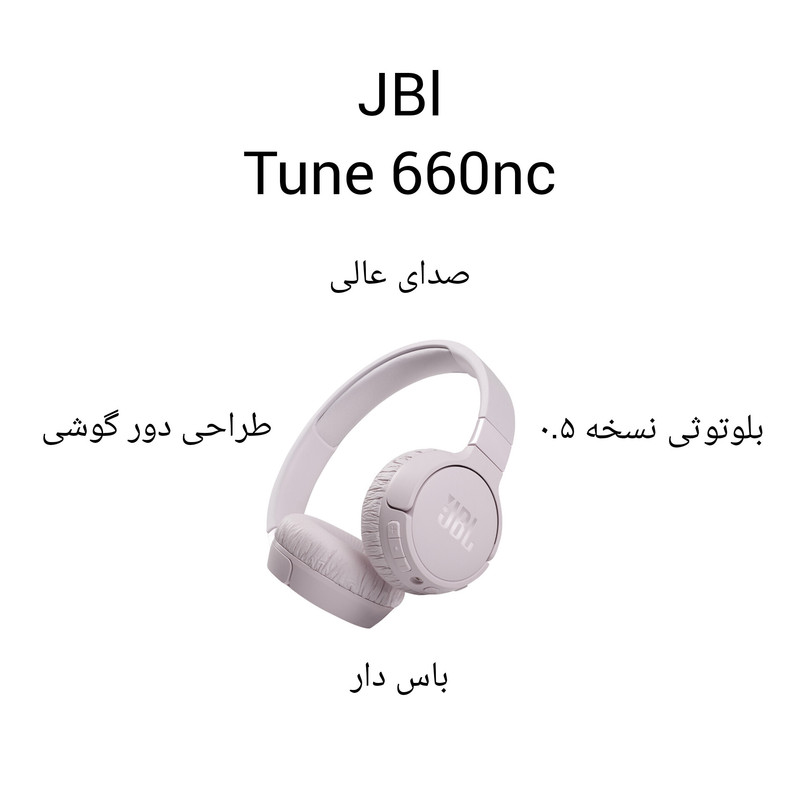 هدفون بیسیم JBL Tune 660 از سری محصولات تولید شده توسط کمپانی آمریکایی JBL است که به عنوان یک هدفون بلوتوثی با کیفیت با طراحی روی گوش (On-Ear) شناخته میشود که خرید آن به هر کسی پیشنهاد داده میشود. برند JBL از سالها تجربه و مهندسی پیشرفته در زمینه تولیدات صوتی بهرهمند است و این شرکت از این تجربه و مهندسی در هدفون بلوتوثی JBL Tune 660 نیز استفاده کرده است. از این هدفون میتوانید با خیال راحت در هنگام ورزش و مکالمه استفاده کنید. پس اگر قصد خرید هدفونی دارید که بتوانید با خرید یک محصول همزمان برای چند کار و در هر جایی از آن استفاده کنید ، این محصول یکی از بهترین انتخاب ها است. این هدفون دارای قابلیت های متنوعی است که باعث جذابیت بیشتر آن شده است. JBL Tune 660 به گونه ای طراحی شده است تا شما بتوانید در هر مکان و هر زمانی که مایل باشید از آن استفاده کنید.با این هدفون می توانید به راحتی به PC ، Nintendo Switch Windows 10, Windows 8, Windows 8.1, Windows 7, ، تلفن همراه و تبلت متصل شوید. همچنین JBL Tune 660 قابلیت استفاده از دستیارهای صوتی مختلف از جمله Siri و Google را دارد. صدای گرم با بیس قدرتمند و هیجانی از ویژگیهای بارز این هدفون بیسیم است. هدفون JBL Tune 660 از نظر پخش صدا دارای کیفیت فوق العادهای است و تمامی اجزای صدا به ویژه بیس را به دلیل برخورداری از قابلی JBL Pure Bass Sound، به صورت کاملا واضح پخش میکند. اگر چه در بسیاری از هدفونهایی که بر روی بیس تمرکز دارند در پخش دیگر فرکانسها کمبودهایی به چشم میخورد، اما JBL Tune 660 از پس این چالش به خوبی برآمده است. این محصول توانایی پخش صدا در بازه های فرکانسی بین 20 هرتز تا 20000 هرتز را دارد. همچنین شفافیت جزئیات صدا در پخش فرکانسهای میانی از نکات مثبت این محصول است که می توان به آن اشاره کرد. یکی از ویژگیهایی که باعث محبوبیت بیشتر این محصول شدهاست، وجود قابلیت حذف نویز فعال (Active Noise Cancelling) در این هدفون است. طبق قوانین صوت فیزیک ، اگر دو موج معکوس یکدیگر باشند و در آن واحد انتشار یابند، یکدیگر را خنثی نموده و صدایی به گوش نخواهد رسید. عملکرد قابلیت نویزگیری در این هدفون نیز به چنین شکل است که با تولید نویزهای معکوس ، تمامی امواج های اضافی محیط (Anti-Noise) خنثی میشود.