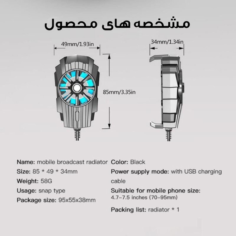 راه انداری با کابل یو اس بی طول کابل :1متر سرعت 4700 RPM ولتاژ : 3.7V Input: 5V 1A متریال : ABS