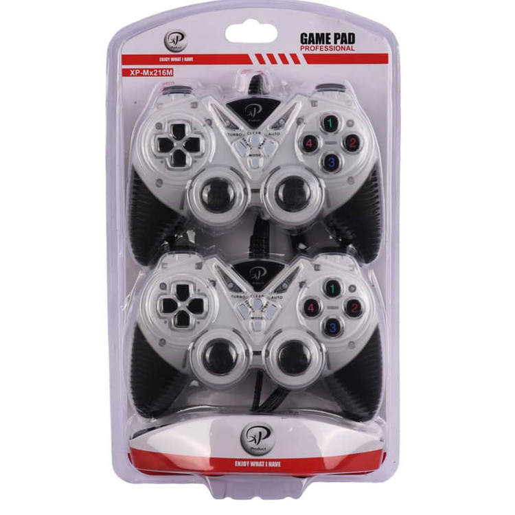 دسته بازی دوبل فانتزی XP-Mx216M یک انتخاب عالی برای کسانی است که به دنبال یک تجربه بازی چندنفره با کیفیت بالا هستند. این دسته بازی دارای دو عدد دسته است که به شما و یک نفر دیگر امکان میدهد به صورت همزمان به بازی بپردازید. هر دو دسته از طریق اتصال با سیم و رابط USB به سیستم متصل میشوند، بنابراین نیازی به نگرانی درباره تمام شدن شارژ باتری ندارید و میتوانید به مدت طولانی بدون وقفه بازی کنید. ابعاد هر دسته 11x16x4 سانتیمتر است، که باعث میشود به خوبی در دست جای بگیرد و در طول بازیهای طولانی مدت نیز احساس راحتی به شما دست بدهد. با داشتن 20 کلید، دسترسی سریع به دستورات مختلف بازی امکانپذیر است و این کلیدها طوری طراحی شدهاند که در برابر فشارهای طولانی مدت مقاوم باشند. همچنین وجود دو لرزاننده (شوکر) در دستهها باعث میشود که تجربه بازیها به خصوص بازیهای اکشن، شبیهسازی و ماجراجویی هیجانانگیزتر و واقعگرایانهتر شود. از دیگر ویژگیهای این محصول میتوان به پشتیبانی از فناوری Plug & Play اشاره کرد که استفاده از آن را بسیار ساده میکند. فقط کافی است دستهها را به سیستم وصل کنید و بدون نیاز به نصب درایور یا نرمافزار اضافی، بلافاصله بازی را آغاز کنید. این دسته بازی با اکثر سیستمعاملهای رایج از جمله Windows 98/2000/XP/ME و حتی MAC سازگار است، بنابراین انعطافپذیری بالایی دارد و با سیستمهای مختلف کار میکند.